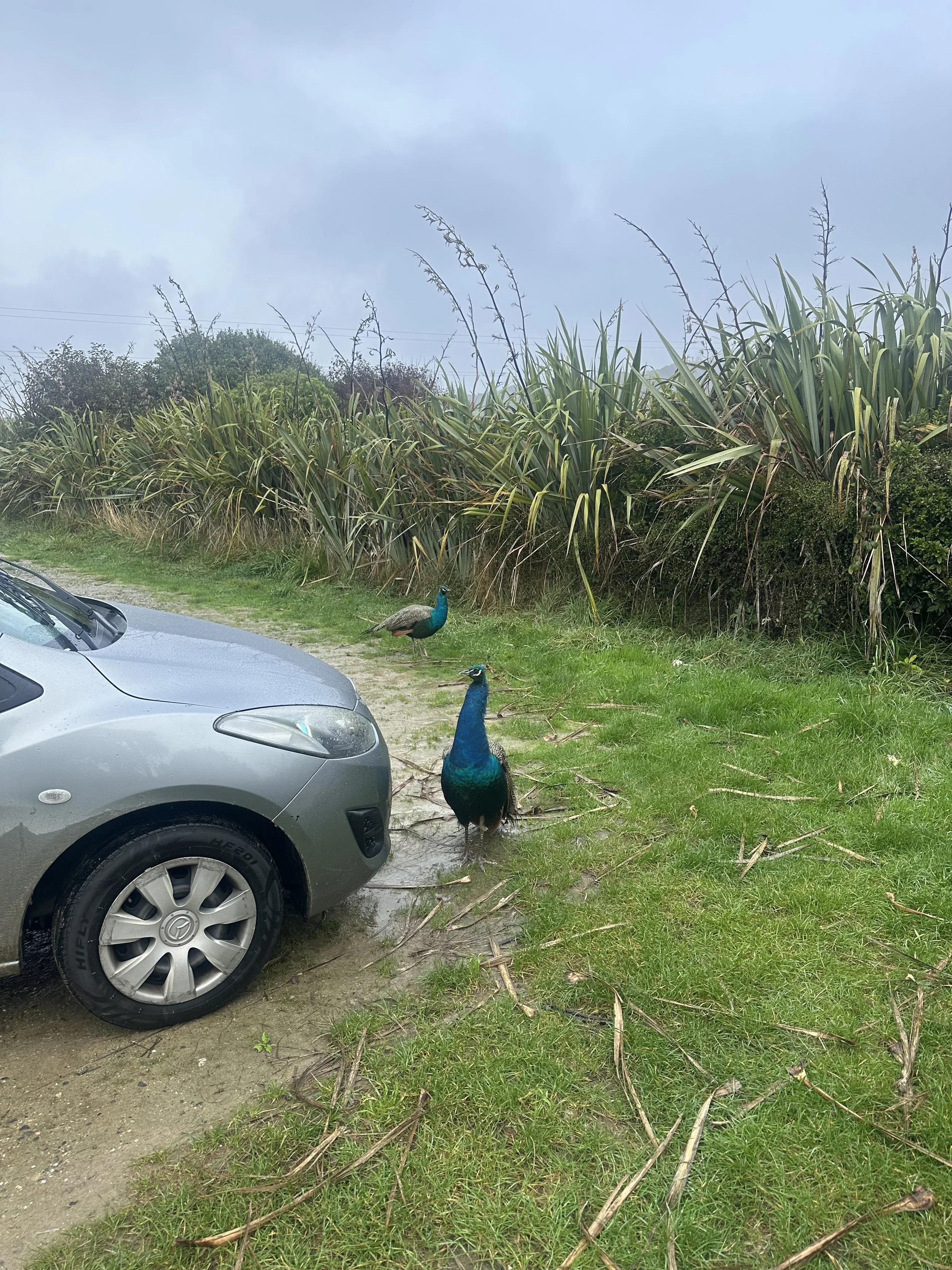 In the car park.. two magnificent peacocks come up to the vehicle.. there’s one other car in the lot.. me.. and two peacocks. They are cussing me out.. I didn’t even do anything I just got here bro. pics attached.