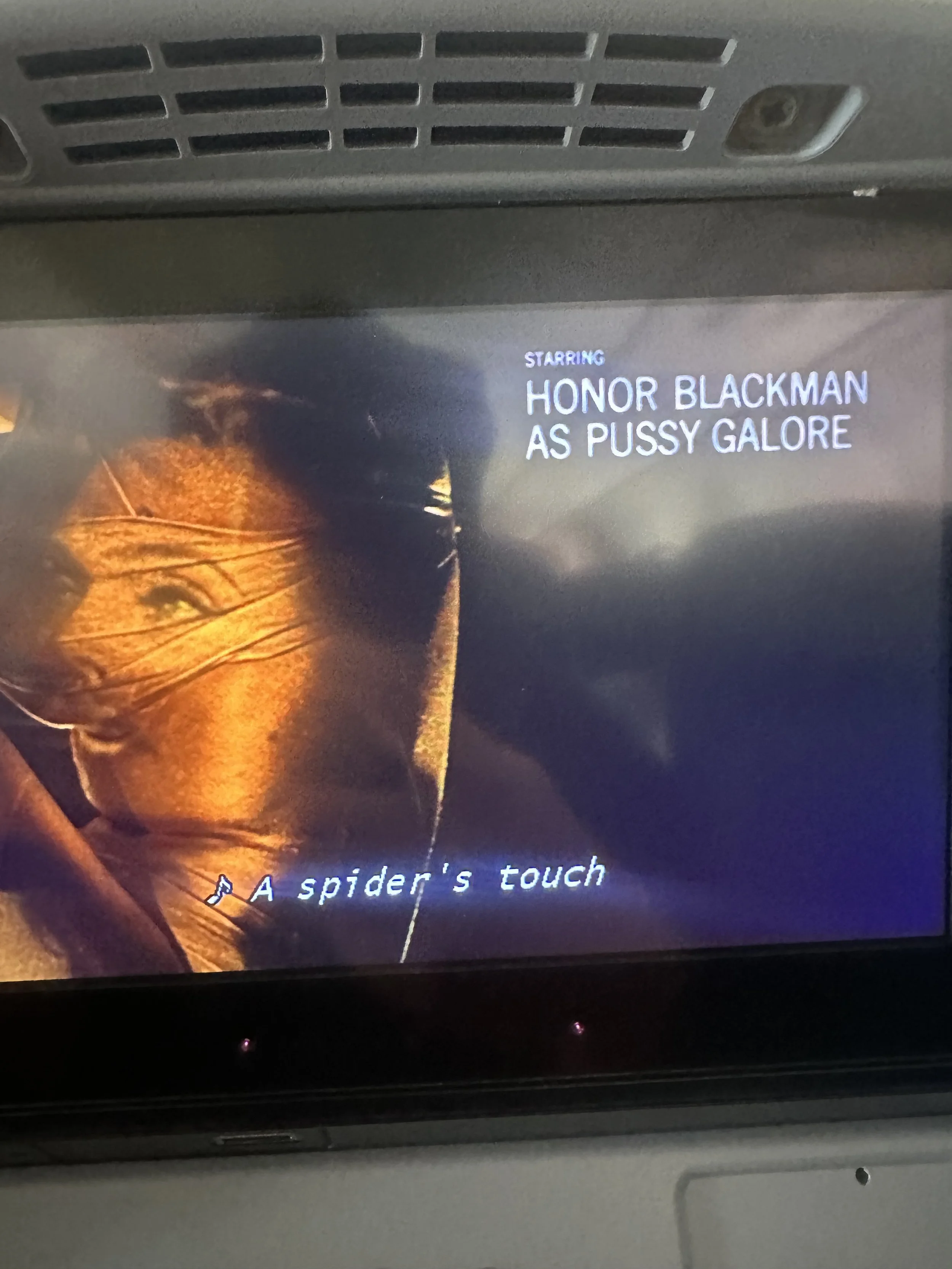 I’m not listening to the movie while I type this…I’m reading a few of the captions and watching some of the action scenes…I’m guessing what year it is…I think I’m wrong…but I’m going with 1968 this film came out. From this era the only visual references I’m going off of are Led Zeppelin..Grateful Dead…Kennedy. Connery is a sharp looking man no doubt..but I can feel the cringe without hearing anything….and the cringe deal is sealed when…they introduce a blonde character…lol she goes “My name is Pussy Galore”….and she has an airplane fleet with identical blonde female pilots in black jumpsuits. Sorry…but Bond keeps referring to her as….”Pussy” and I’m laughing to myself like a 7th grader in biology class with his best friends before p.e.
