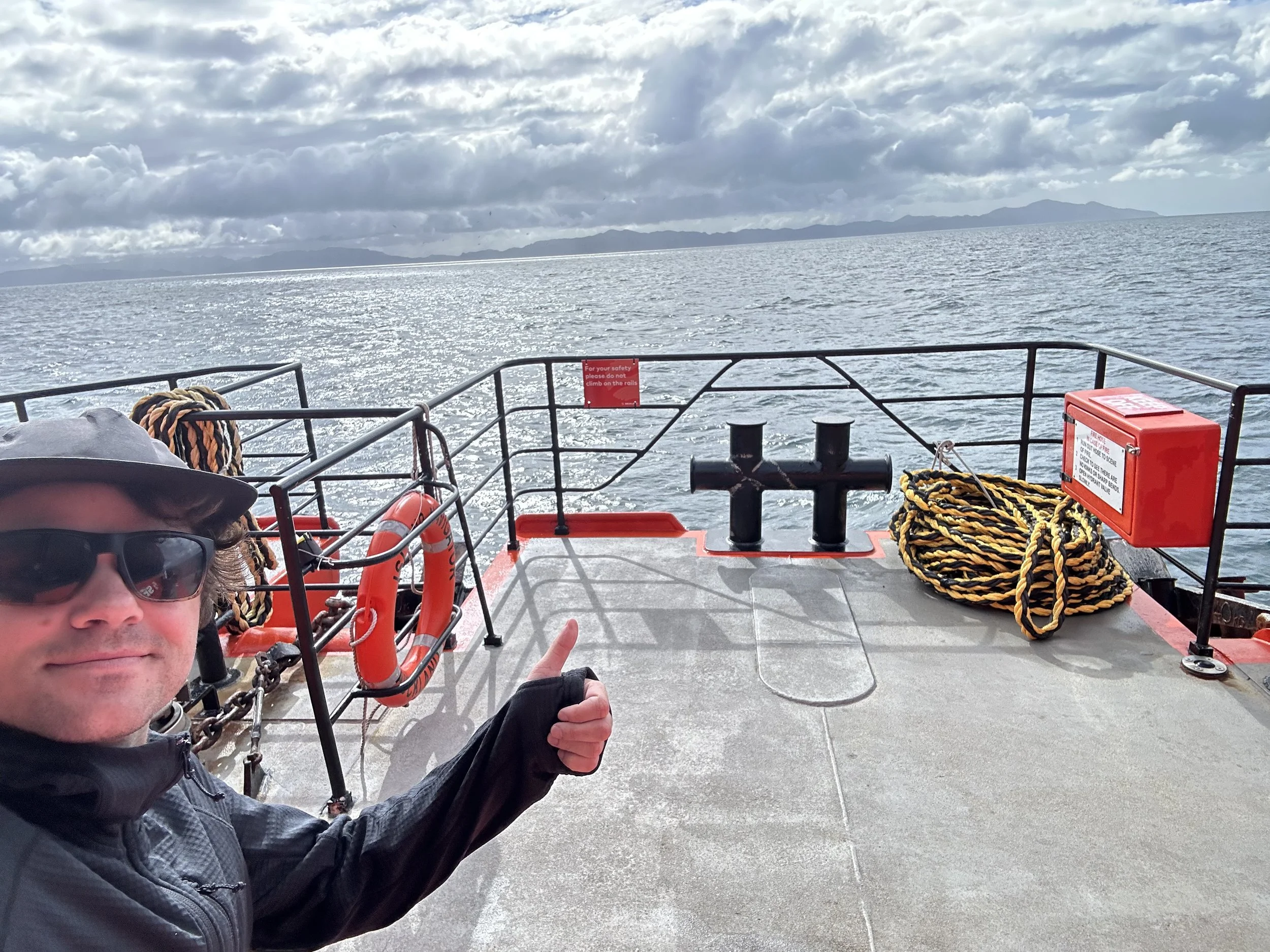 The only similar situation looking person on the boat sits next to me on the bow…she’s a hiker..we have two completely different game plans on how to attack and make the most of our time on the island right in front of us. She is going to hike this long overnight trail across the island. She will hit the ground running as soon as we land at 11am so that she can make it to her “hut” before it gets too cold and dark out.