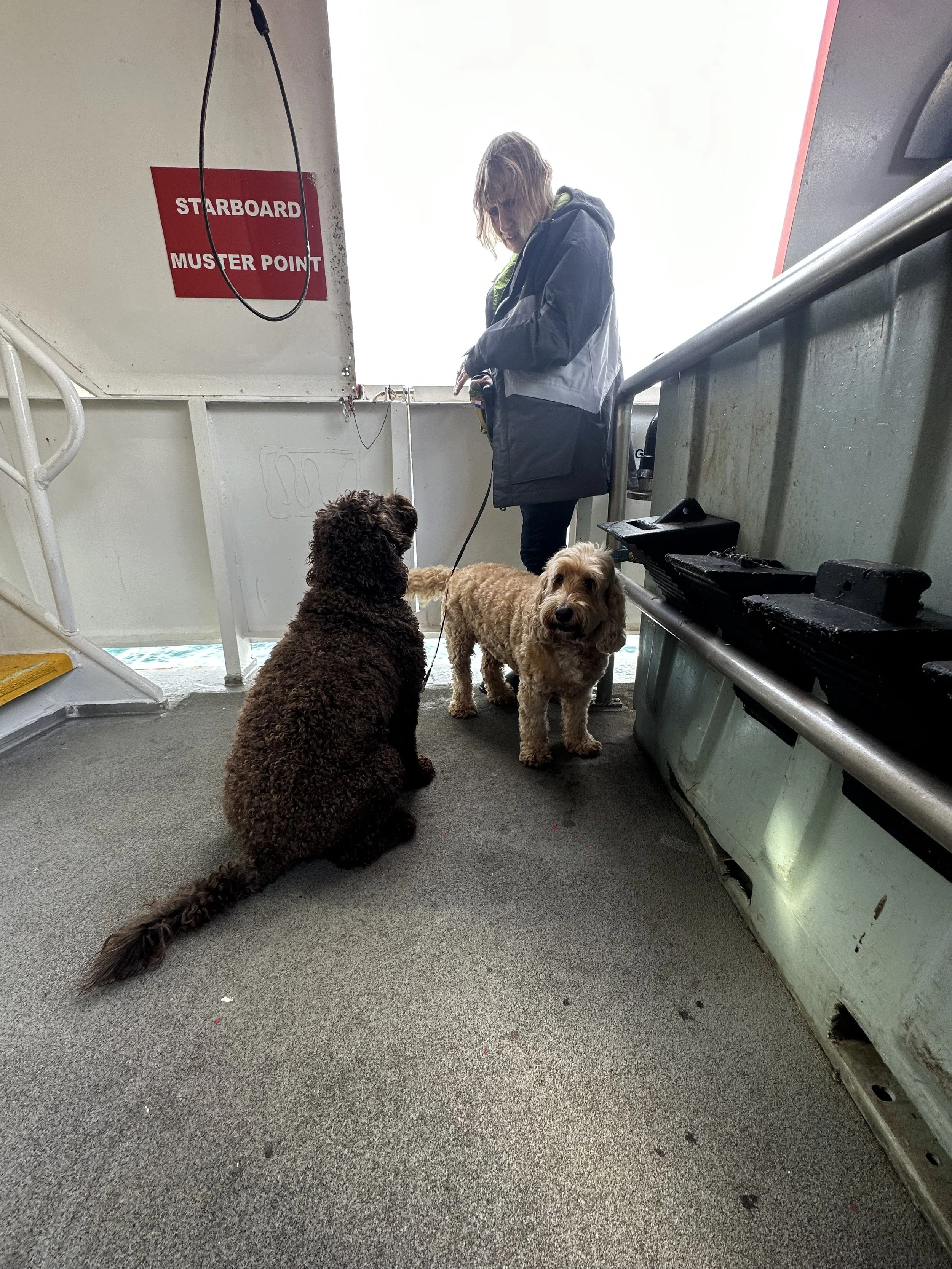 I wake up with a rush…like a…what are you doing in this world..where are you.why are you laying on a boat on the otherside of the world..…the thought surrounded my upcoming move to a place where I don’t know anyone..it didn’t last too long…but it was very strong…and it was a jolt/rush of reality coming my way very soon. I didn’t know how long I was asleep for..It exceeded ten songs and there is no telling how many more after that…I don’t even know if I was asleep. I stand up…no longer sea sick. Sunny day..boat is still rocking..but I’m okay..I got through it thank goodness. I sit back with the dogs and Kristy…she is telling me more about the island she lives on…she understands my backpacking and winging it way of traveling..but she begins to insinuate that I should probably go ahead and try to secure a place to sleep as it gets very cold at night and things close early in the “towns”…there aren’t towns…there are like 4 cafes across the island..a couple restaurants..a couple single gas pumps, there's…not much whatsoever…everything runs off solar panels and their water source is generated from rain water. I knew some of this..but still figured I could make it work.