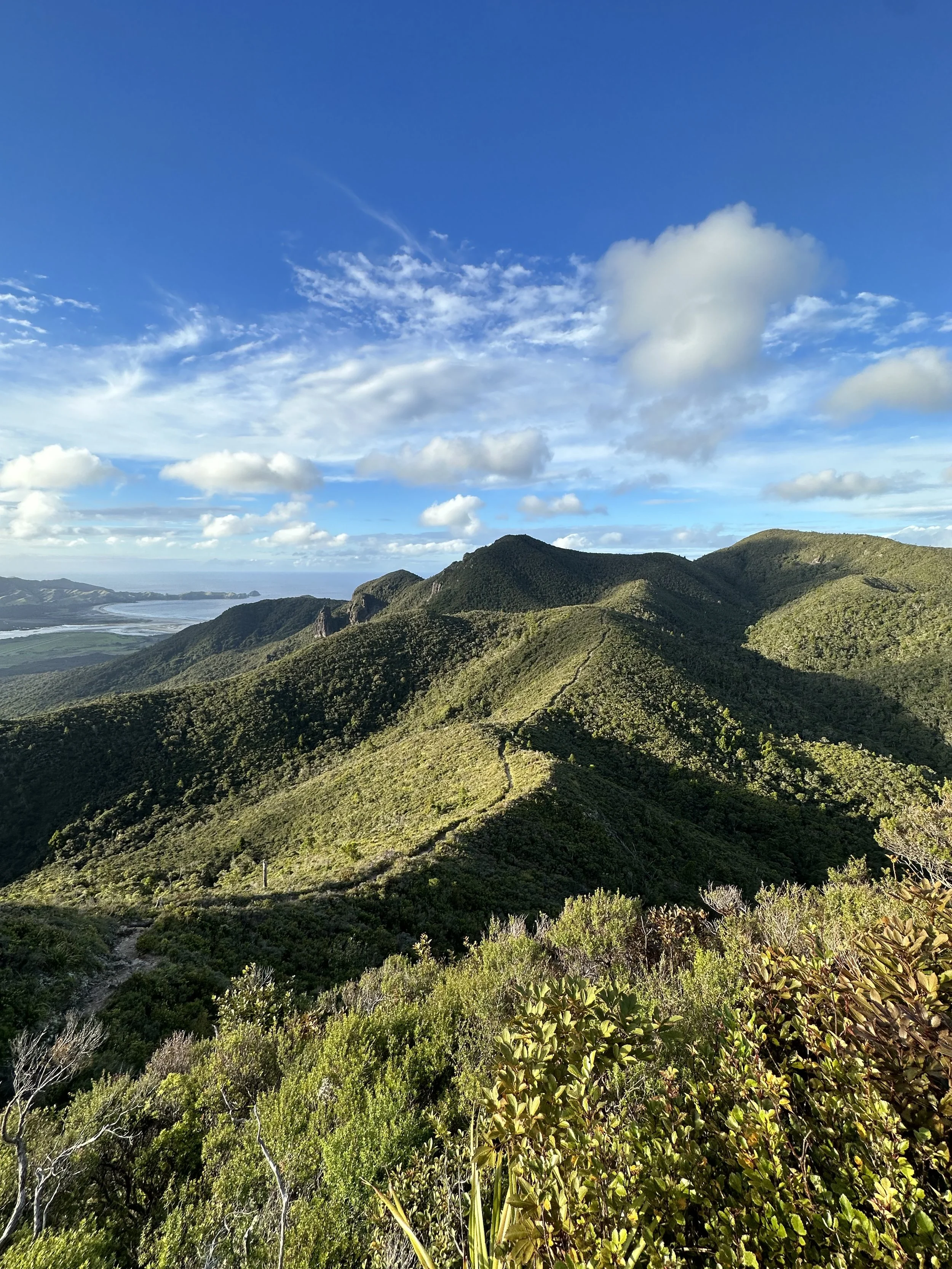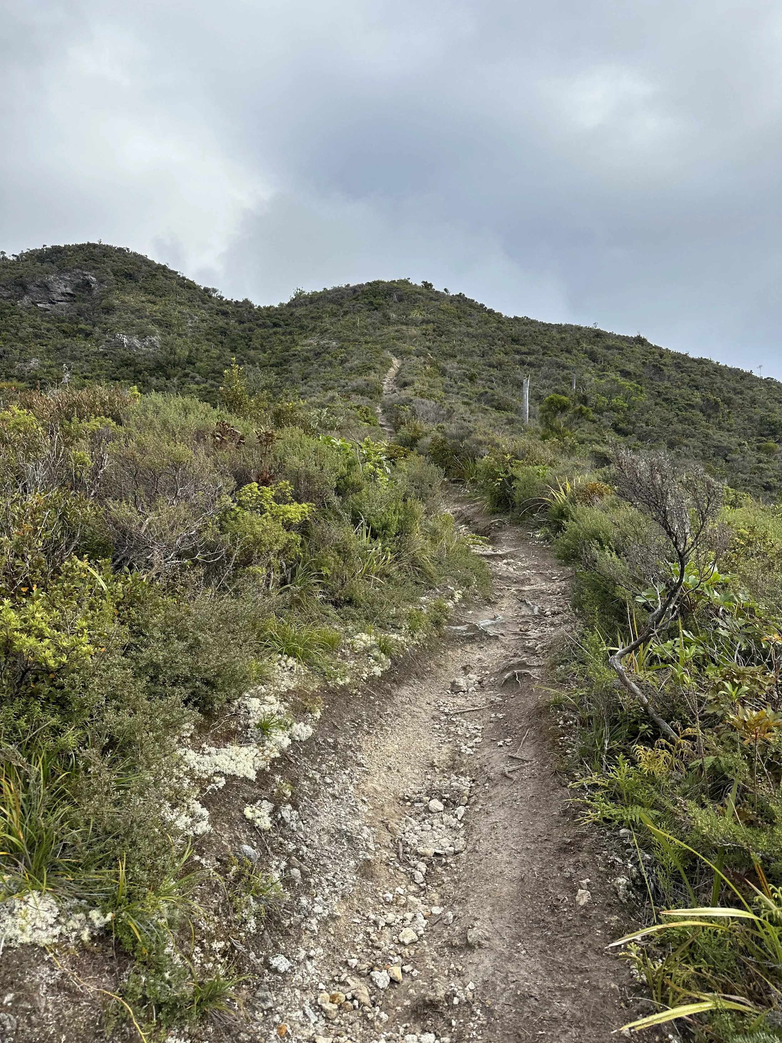 I take off further north on the island…part of the coves feel like key west…fisherman..boaters..islanders…I saw a few boats on stilts…perched up and turned into house boats. It reminded me of the show bloodline a little bit..which I guess is set in Key West. On the map my host gave me…she wrote down “30 min” at Windy Canyon…alright let’s go see windy canyon..its early afternoon. I park the car…leave my water and book bag in it…it’s going to be a short walk…I have my green boots on instead of my hiking boots. I do have a light jacket. I take off. Elevation begins…I mean freaking stair case after staircase…I see windy canyon…yea its cool..but it didn’t take me long to get to it…I look further out over the Ridgeline and see the trail continuing…my phone is on about 15%…I get one bar at the top of the ridge I’m on…I pull up all trails….Mt. Hobson is what I’m looking at ahead of me…highest point on the island..Its maybe another hour to it….so I’m on the otherside of the world for only a couple more days..on a remote island that is absolutely stunning…and you think I’m just gonna let that viewpoint be in such close range and to turn around and abandon it…nope…we keep going…knowing that our phone will die..knowing that we don’t have food or water.